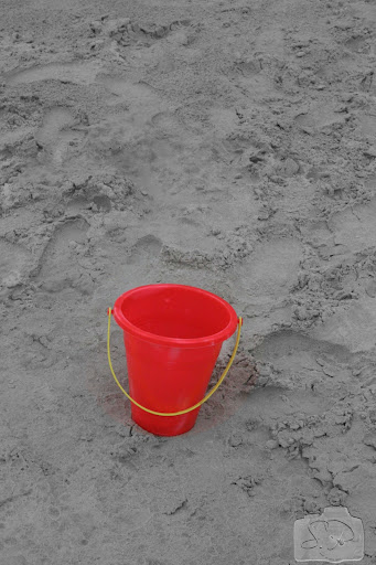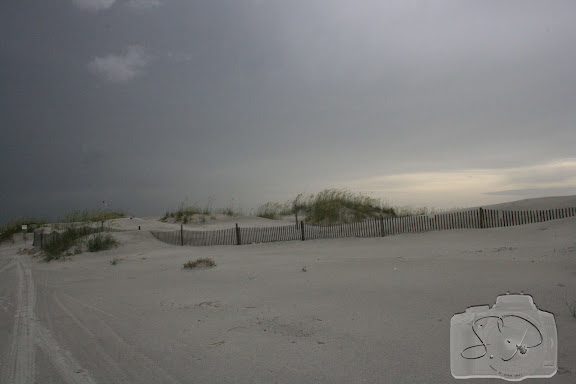 Footprints in the sand. Note the child sized ones alongside the adult ones